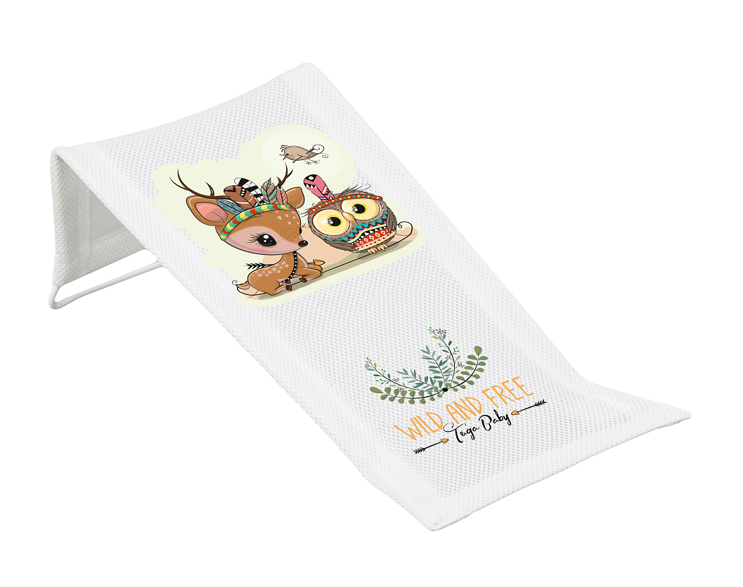 • Koupací lehátko s obrázkem, které podpírá hlavičku miminka při koupání.
