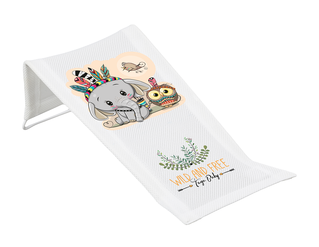 • Koupací lehátko s obrázkem, které podpírá hlavičku miminka při koupání.